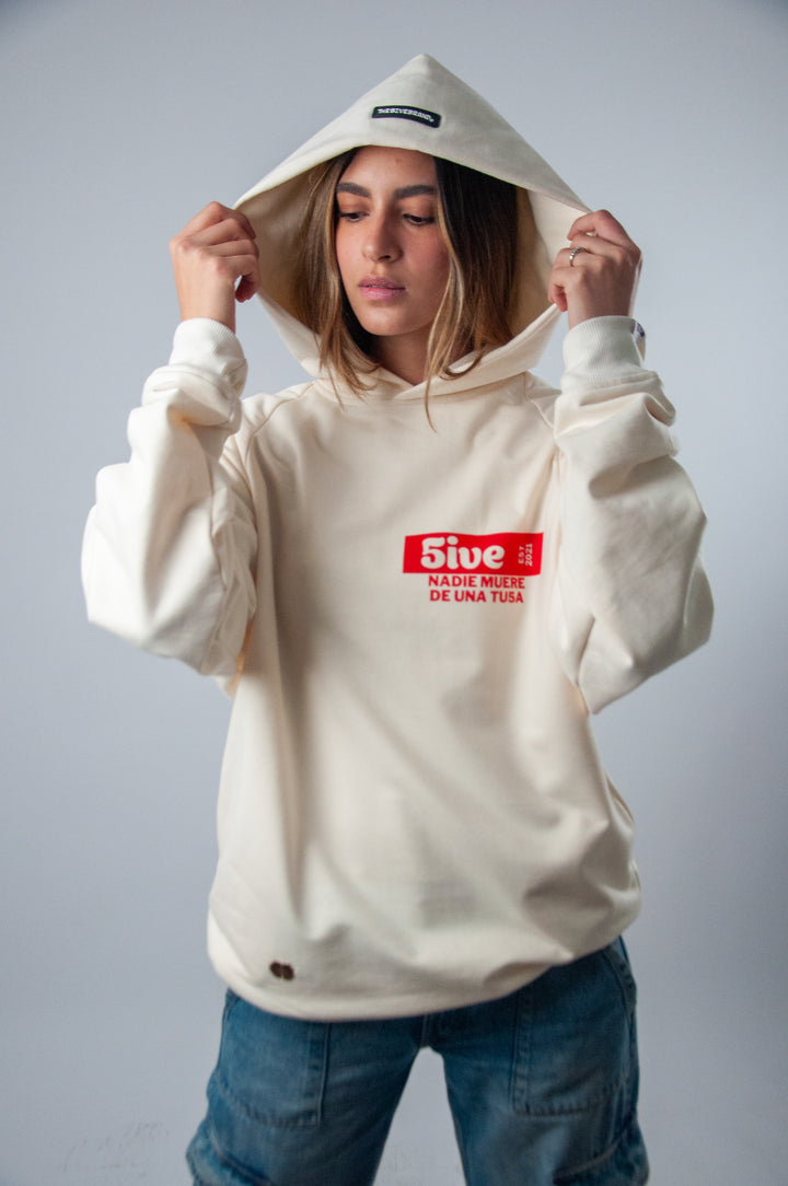 El hoodie de la colección de San Valentín de 5ive es la fusión perfecta entre comodidad y estilo romántico. Confeccionado en un suave tono crema y una mezcla de 65% poliéster y 35% algodón de 350 gramos, este hoodie garantiza calidez y confort. Su diseño se destaca por un estampado en serigrafía que evoca la pasión del amor, realzado con apliques como una distintiva marquilla metálica y detalles en goma que añaden un toque moderno y distintivo. ¡Ideal para abrazar el espíritu del amor en cualquier ocasión!